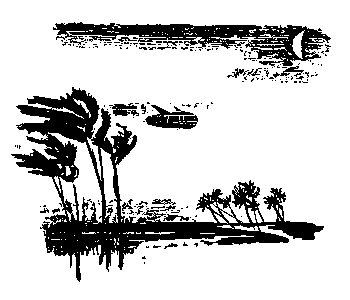 ...Леонид медленно брел вдоль берега океана, по аллее, ведущей к Океанологической Базе, где работала Уна. Наступил вечер, и первые звезды зажглись на темно-синем небосклоне. Неожиданно из-за ближайшего хлебного дерева вышла Уна. Леонид не заметил ее, погруженный в свои мысли