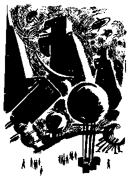 Его размышления прервал рев тормозного двигателя. Перегрузка вдавила Леонида в кресло, он страдальчески морщился Послышался характерный звук рассекаемого воздуха: выпустив крылья планера, стратоплан вошел в плотные слои атмосферы. В глубочайшей пропасти разлилось зарево огней Чукотска, города с двухмиллионным населением. Робот-пилот бе зукоризненно посадил стратоплан на рельсовую тележку, кого рая окончательно и затормозила его. Шесть тысяч километров. аппарат покрыл за двадцать пять минут, молнией промчавшись над большей частью Азии.