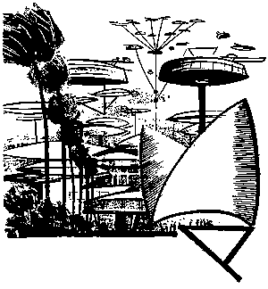 Он радировал в Кибернетический Центр Города Знания: там тоже ничего не знали, но заинтересовались сообщением. Поскольку Леонид не мог ясно описать аппарат, ему предложили собрать более точные данные. Насмешливый женский голос даже выразил сомнение в реальности «гриба». Леонид рассердился, выключил планетофон и снова лег в гамак. Наступило утро, а он все думал о проклятом «грибе», слушая, как пробуждается город, сразу наполнившийся мелодичным жужжанием аэротакси, говором тысяч людей, чистыми гудками атомоходов, швартовавшихся в порту. Его злило вынужденное бездействие, но он не знал, что предпринять.