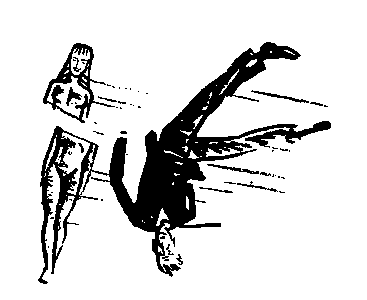 Художник, напрягая все силы, все же стащил статую с колонки. Сумев взвалить ее на плечо, Ритам не удержался на одной ноге, потерял равновесие и упал. Не выпуская дорогое ему создание учителя, он безуспешно старался снова под няться на ноги.