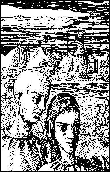 ...Излучатели склонились к игле направляющей башни. Под их изломами черными зрачками темнели генерирующие диски. Пэй нажал клавишу пуска и отошел. Диски медленно повернулись и застыли. Вокруг острия иглы завихрилось призрачное облачко. В его глубине замерцало, засветилось радужное пятно. Потом оно потемнело и закруглилось в яркий голубой шар, стремительно и бесшумно, крутящийся на острие. Набирая обороты, шар сплющиваясь, загибался кверху и превратился наконец в сияющую полусферу. Середина ее засветилась яростным режущим светом и с пронзительным воем полыхнула в темное небо тонкой иглой ослепительного луча. Его отблеск озарил равнину до самого горизонта. В воздух поднялись всполошенные птичьи стаи, их тревожный крик слился с надрывным воем луча, и Айме почудилось, будто вся планета в нетерпении в тоске призывает летящих в Таосе...