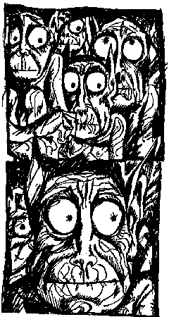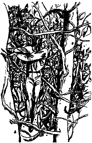 Роджер стал резать волокна, которые держали сук. Все остальное произошло мгновенно. Существа вышли из своих гнезд. Лица были совершенно бесстрастны, они не издали ни звука, желтые глаза их мерцали.