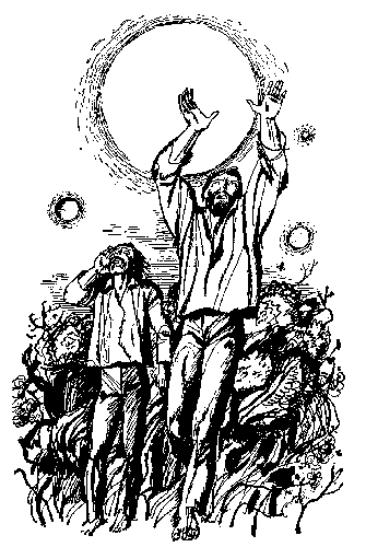 И тогда существа встретили людей. Они подняли их на деревья, положили в гнезда, накормили и напоили, но и виду не подали, что рады видеть их, — ни слова приветствия. Существа делали все, чтобы люди смогли идти дальше, и только.