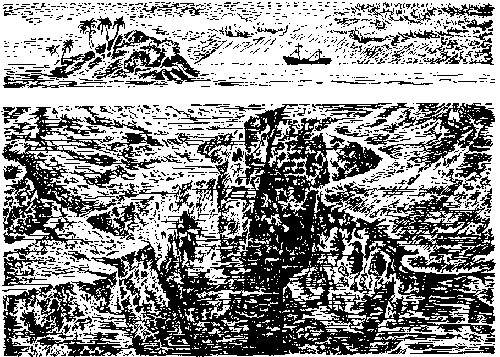 Островитяне называли себя экипажем: и впрямь, островок напоминал по форме старинный корабль с острым носом и обтекаемой кормой. Сходство с кораблем усугублялось высокой остроконечной скалой — мачтой и несколькими естественными площадками на разных уровнях — палубами.