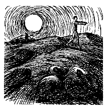 Но на фоне корабля Бонк почему-то все время видел совсем другое — тоненькую человеческую фигурку с ореховым прутиком в вытянутых руках, медленно бредущую через раскаленную пустыню.