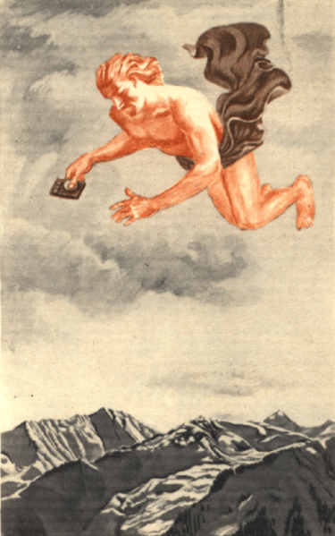 «Зачем плыву я по зову Тумунуи? Он же с детства ненавидит меня! — размышлял мореход. — Что ему нужно?» И ему хотелось немедленно повернуть назад, в Южное море. Он плыл туда, повинуясь голосу Орза, чтобы Гремящим проливом пройти в другой океан (о котором упорно твердил Голос). Затем, поднявшись на север вдоль побережья, отыскать Великую реку, где в Трясине ждет пробуждения «Ки-борг»... И Тангол почти достиг Гремящего пролива, но тут каноэ нагнал посланец Тумунуи на дельфине. Лишь дельфин, обученный жрецами, мог отыскать в океане пылинку в его просторах — каноэ. Измученного многодневной гонкой, вконец обессилевшего гонца с трудом втащили на палубу. Он молча протянул Танголу письмо-дощечку со знаками кохау-ронго-ронго и впал в забытье.