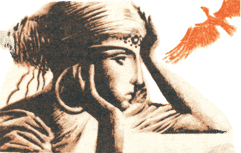 На трап ступил кормчий-палу Момо, старый товарищ с львиной гривой седых волос. Глядя на Тангола преданным взглядом, он низким голосом исполнил песнь о вожде, уехавшем на далекий атолл. В монотонном, простом мотиве были, однако, неожиданные сила, печаль и красота. Тангол вдруг понурил голову, глубоко задумался. Какая-то тяжесть легла на сердце, великая тоска разрывала душу. Смутно понимал он, что это не его тоска. Ну конечно, то грустит Орз о родной планете Сибре. И тут в подсознании морехода раздался еле слышный Голос: