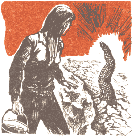 За обо было небольшое углубление, куда Анна Семеновна вылила из ведер воду. Посмотрела, как быстро она впитывается в песок, и собралась уходить, но тут мокрый песок зашевелился. Он подрагивал, вспучивался, влажная плотная масса рассекалась трещинами и разваливалась на комки. Уж не тарбагана ли, затаившегося в норе, облила она? Но вместо острой мордочки суслика из расступившегося песка появилось нечто круглое и сизовато-серое. Демьянова на всякий случай спряталась за обо, но продолжала наблюдать. Между тем неизвестное животное почти на полметра вылезло на поверхность и превратилось в толстого, сантиметров тридцать в диаметре, червяка, покрытого сверкающими на солнце узкими пластинками. Больше всего он напоминал огромную личинку майского жука. На тупом конце его вдруг вспыхнул голубоватый огонек, который медленно разгорался, наливаясь синевой. И тут непонятный страх охватил Анну Семеновну. Это был не страх перед опасностью и даже не страх предчувствия опасности. Это был какой-то черный кошмар, совершенно необъяснимый. Он длился несколько мгновений, потом исчез и сразу забылся. Погас и фиолетовый огонек на конце тела животного. Оно судорожно задергалось, свернулось. Толстый червяк замер, на чешуйчатое тело лег волнистый солнечный блик.