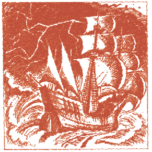 На палубе улыбающиеся моряки машут шейными платками и треуголками. Все как один загорелые, белозубые, с мускулистыми руками. А на капитанском мостике, небрежно сбивая тросточкой клочья белой пены, которую туда взметнул ветер, стоит тоже загорелый, обветренный ветрами семи морей просоленный капитан. У него красивое мужественное лицо. Из рукавов богатого камзола выглядывают знаменитые брабантские кружева, на широком белом шелковом поясе висит длинная шпага с затейливым эфесом, над которым работали лучшие мастера Милана, а ножны украшены драгоценными камнями...