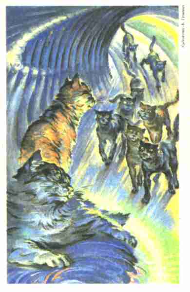На прогалине была какая-то странная штука размерами чуть побольше гаража. Впрочем, всю ее Джим рассмотреть не мог, так как свет падал из бокового отверстия, оставляя большую часть сооружения в тени. В это отверстие прыгали кошки, задерживаясь на миг, чтобы соприкоснуться носами с большим черным котом, стоявшим снаружи. Наконец скрылась последняя кошка. Остался только этот кот.